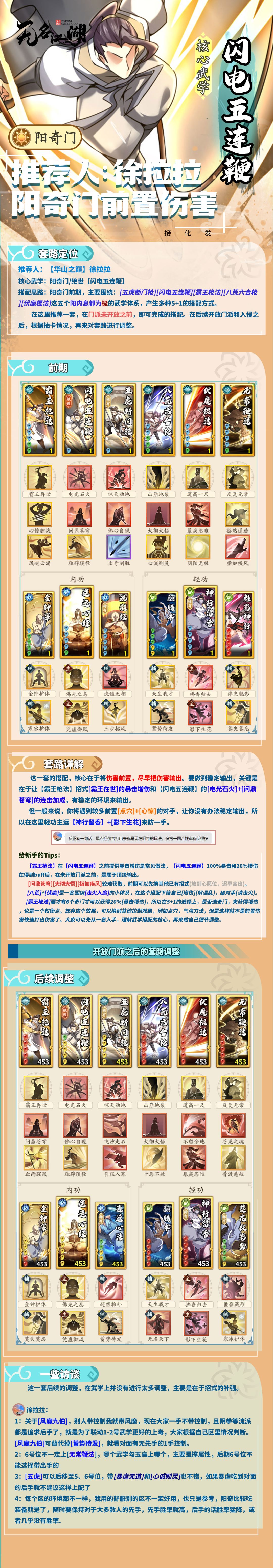 本篇攻略为大家整理了阳奇门套路推荐,以及后期开了门派后加强版的搭配推荐,老规矩一图流,希望可以帮到有需要的朋友。武学理解可能存在偏差,欢迎指正和评论区提问。