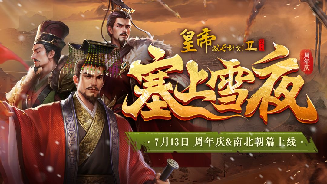 《皇帝成长计划2》将于7月13日正式迎来五周年庆典,「塞上雪夜」南北朝代资料片届时同步上线!