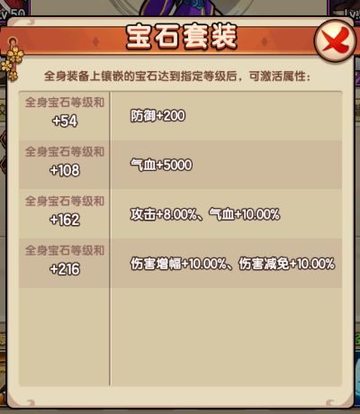 4、宝石套装:全身装备上镶嵌的宝石达到指定等级后,可激活属性。
