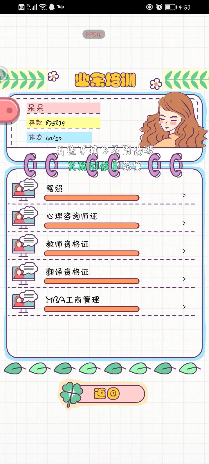 也算是事业有成吧 一直想嫁给小许 我从30岁就跟小许好感度100 但是一直都不跟我求婚 后来我也不想拖就跟小徐认识了 直到我37的时候我害怕没人跟我求婚我就没有宝宝了 因为我事业有成 所以一直想养老 结果小徐和我求婚了 因为我一直想要一个姐姐就希望第一胎是姐姐 又因为上一世生了五个女孩 我就想要个儿子 年龄不差太多也好照应 好在是第一胎女孩第二胎男孩 生了孩子后我几乎全身心投入带孩子 因为我也不差钱 有上一世五娃死三个后一直很自责 我就给我大宝二宝读最好的书 也出版了小说和漫画社也算是女主的心愿 毕竟她老因为这个心情减10 后来我健康和心情颜值也常年100 孩子到了25就全身心的催婚 两个宝宝都是26结的婚 成绩也很好 一直在出国留学 总而言之 这个游戏就告一段落了 我玩了两个通宵也算是累了