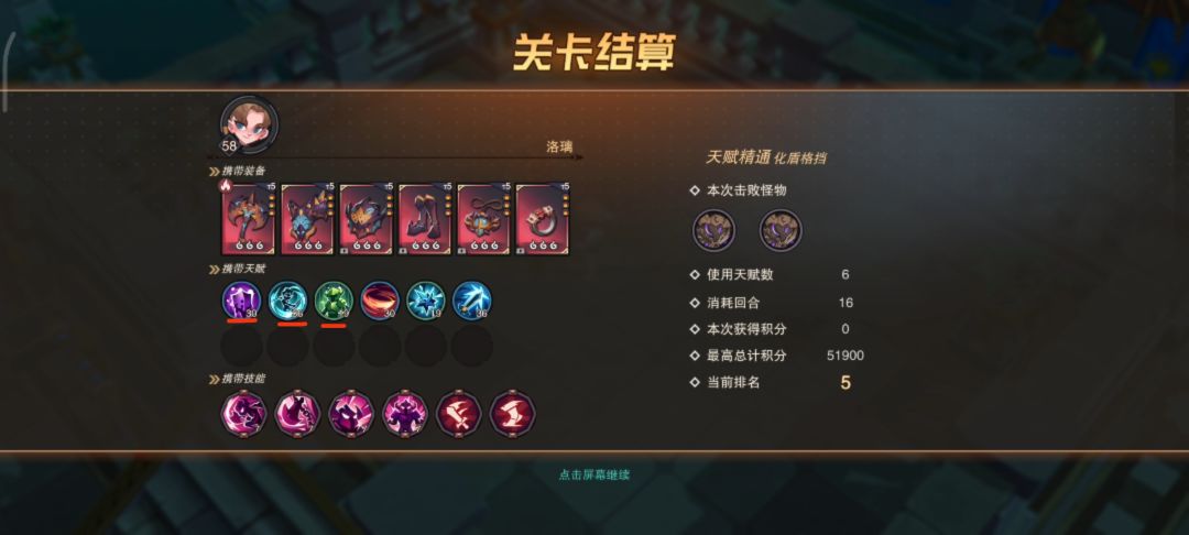 此关较难,全部都可为核心,要尽量升级天赋,攻击天赋必35级