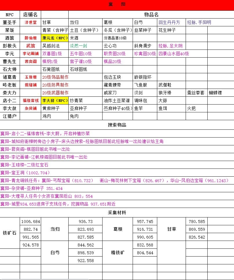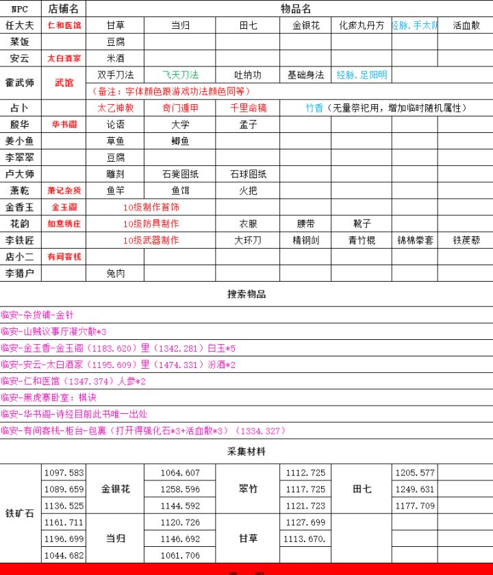 给各位大侠献上一份任务坐标的资料,感谢大家支持