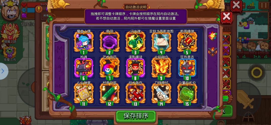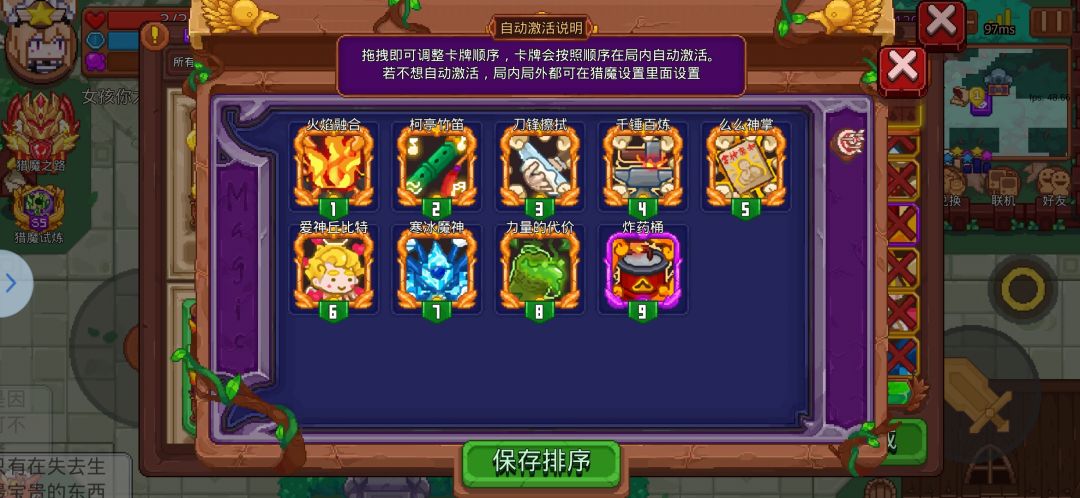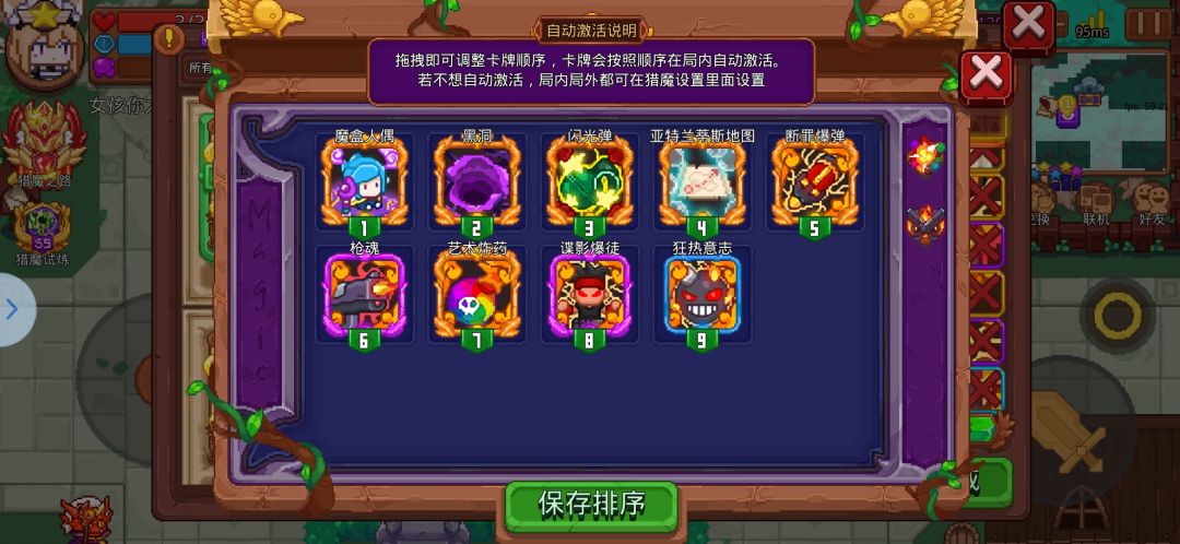 玩永动机火绒笛子,玩武斗套刀锋千锤,都行。塞在核心9卡后面就行。没有笛子可以用魔神,都是贪生存的卡。局内一般默认12张卡,注意卡牌激活顺序。