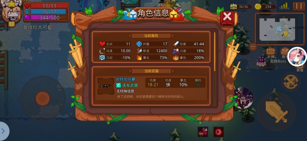 被黑洞地刺吸住了也没事,天赋举盾给的3s无敌足够走出来,地图给的血盾有20左右,足够肉能扛住BOSS伤害。如果带笛子一共有接近7s左右的无敌,足够了。如果卡组低星伤害不够就老老实实走a走a停火,然后继续,慢慢磨,老乌开盾(身上有一个黑绿色的圆)就停火不要打,打成习惯了就知道怎么处理老乌了。带笛子进场放技能然后拉开走a,不带笛子就别放技能。