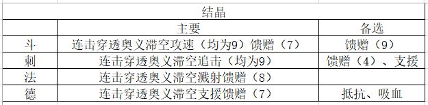 如下表所示,为比较常规的结晶带法,与主线推图相当类似。备选的结晶用于一些比较特殊的BOSS。