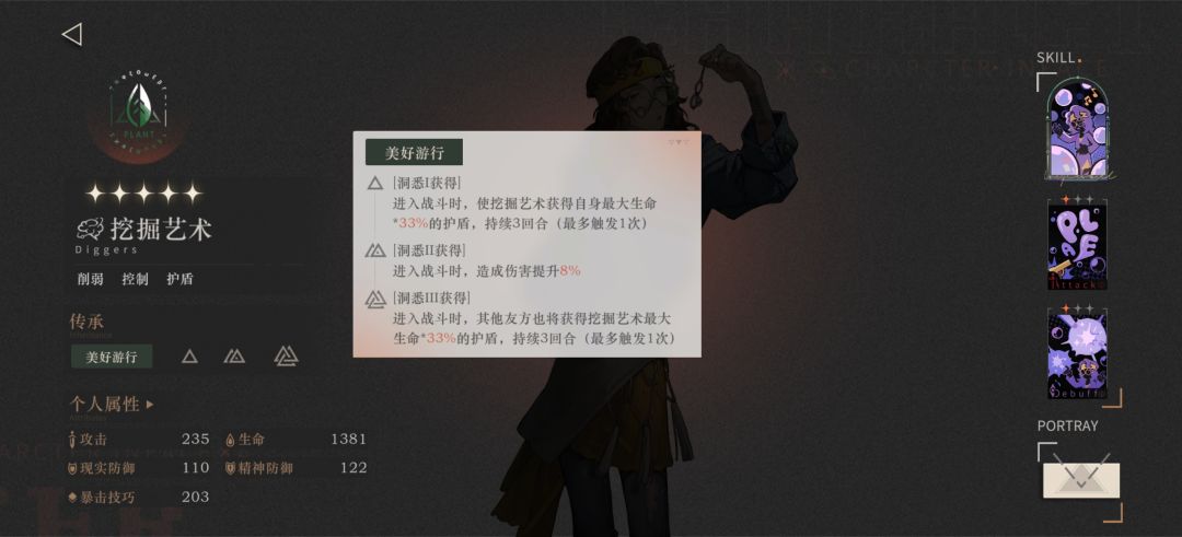 ①前言:挖掘艺术是一名木灵感精神创伤辅助角色。自身非常优秀的机制让他一跃成为全游戏最泛用的辅助卡(我认为的),我个人十分推荐不想抽皮克勒斯的玩家捞一个耍耍,该池五星综合强度优于六星。不建议两个队伍体系已经成型的司辰强行培养至洞悉三。