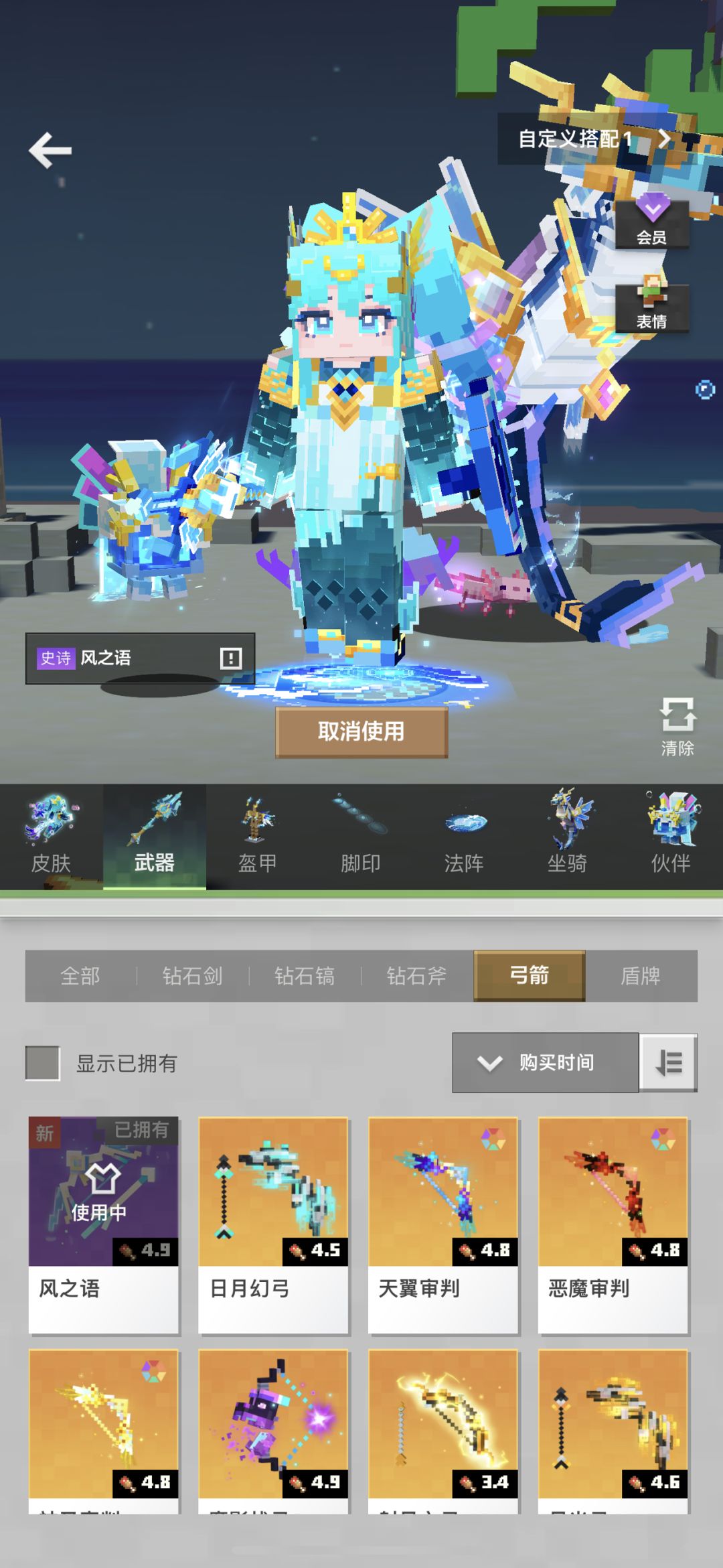 7.6 千海之心搭配!! 往期 衣服~天凤之翼➕弓~风之语.(搭配特点:蓝➕金)