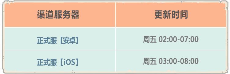 我们预计在08月14日(本周五)对服务器进行停机维护,为了确保版本稳定性,以后会错开不同渠道服务器的更新时间,本次正式服各渠道更新时间如下: