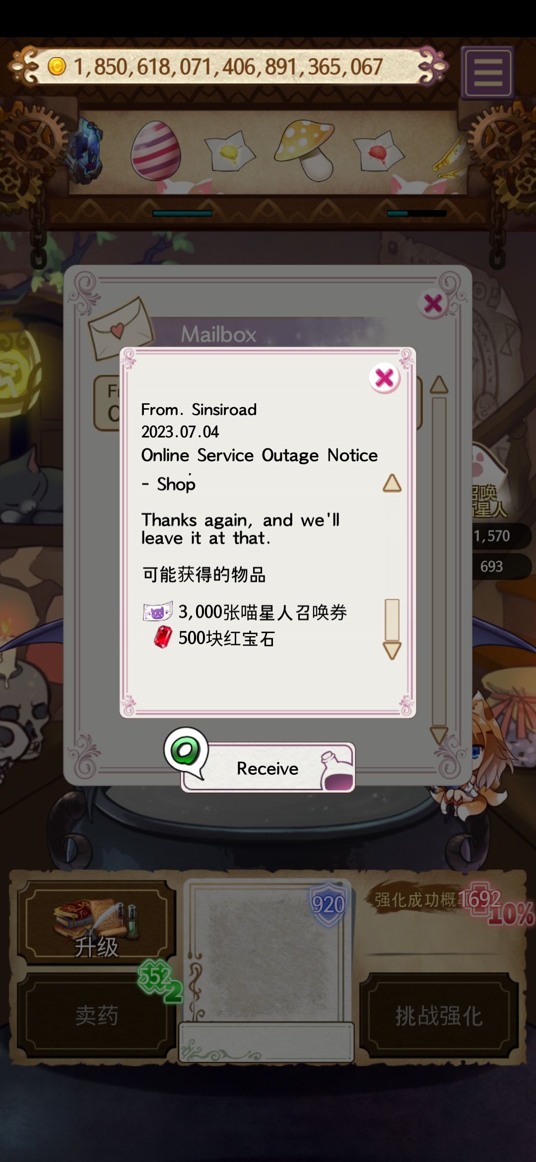 虽然sinsroad已经很久没有更新potion maker了,但他们在八年里一直在开着服务器供大家保存游戏。但由于服务器太昂贵,终于自今日起,potionmaker的服务器将被关闭,保存功能,邮箱,谷歌商店与成就都将关闭。