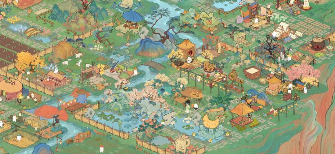 鱼池边是就是土料工厂,挖土—制泥—成瓷。周围还有萝萝专属娱乐项目,提升幸福度。