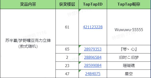 小瞳将在评论区通过TapTap官方抽奖平台随机抽取5位幸运小伙伴送上苏半夏/梦野瞳(款式随机)亚克力立牌!