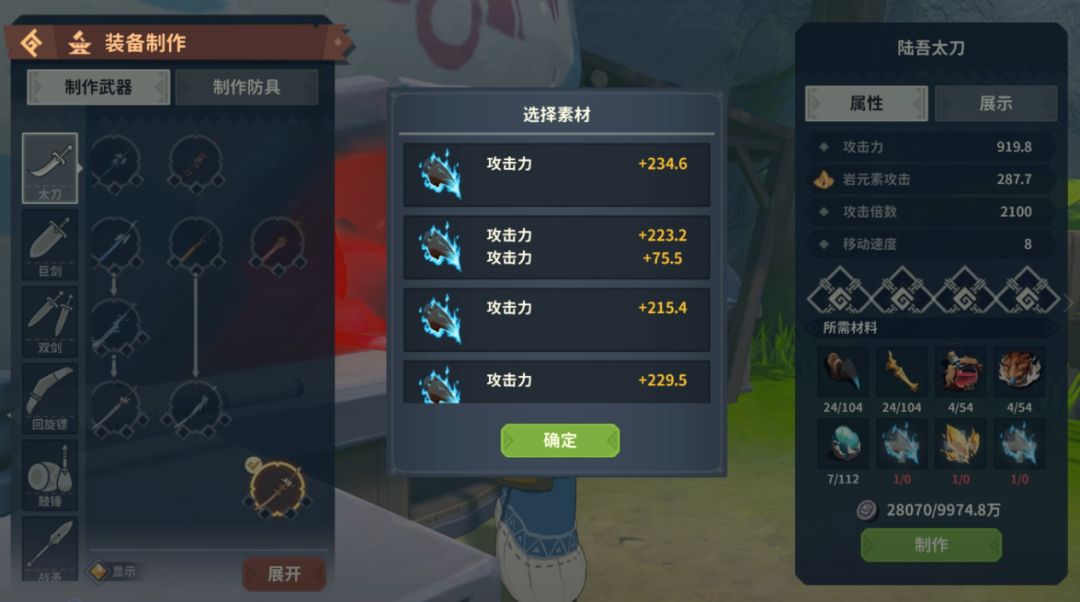 在制作时,选择相应的素材道具填入,即可制作出增加了该项属性的武器了。请冒险者们尝试制作吧!