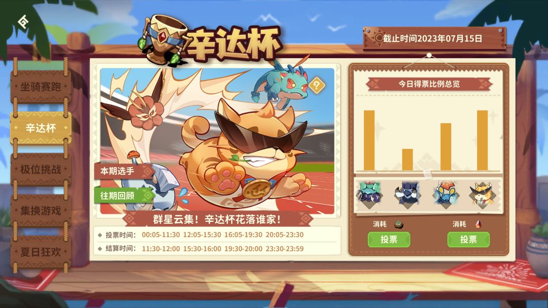 休闲玩法—辛达杯上线,在这个玩法里,冒险者们可以通过消耗[远古之印、龙晶石]选择自己最为看好的一只宠物参赛选手,若是所选选手荣获第一名,则可以获得[刻痕之印、多倍龙晶石]的奖励!