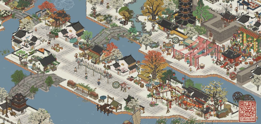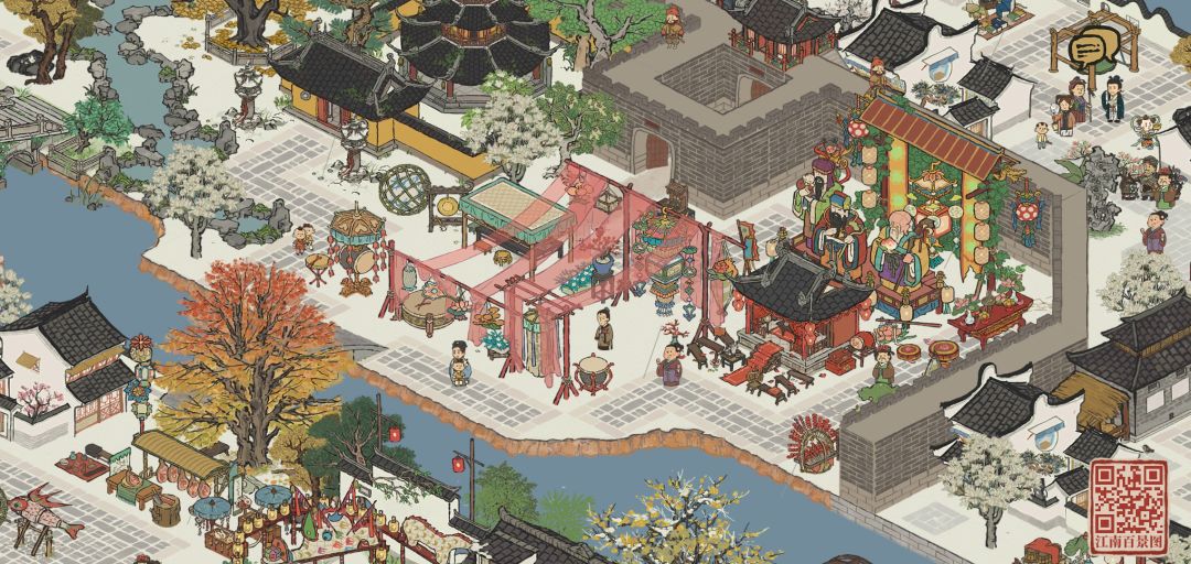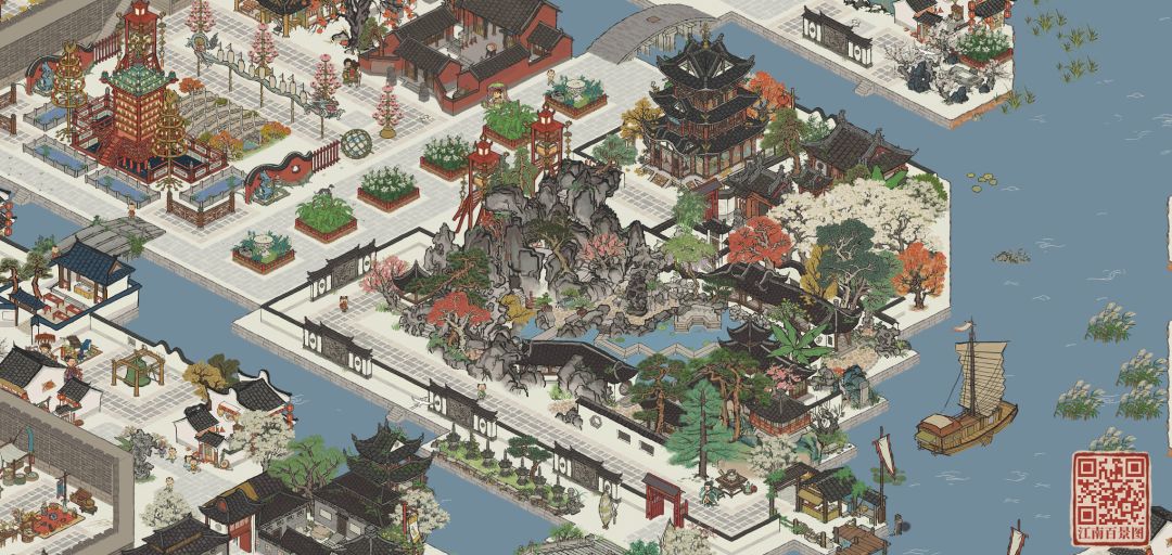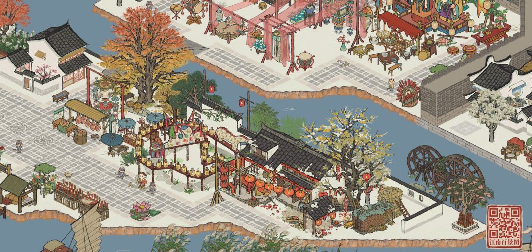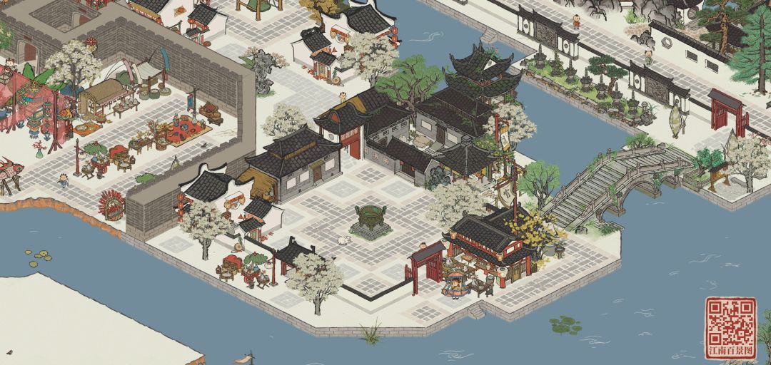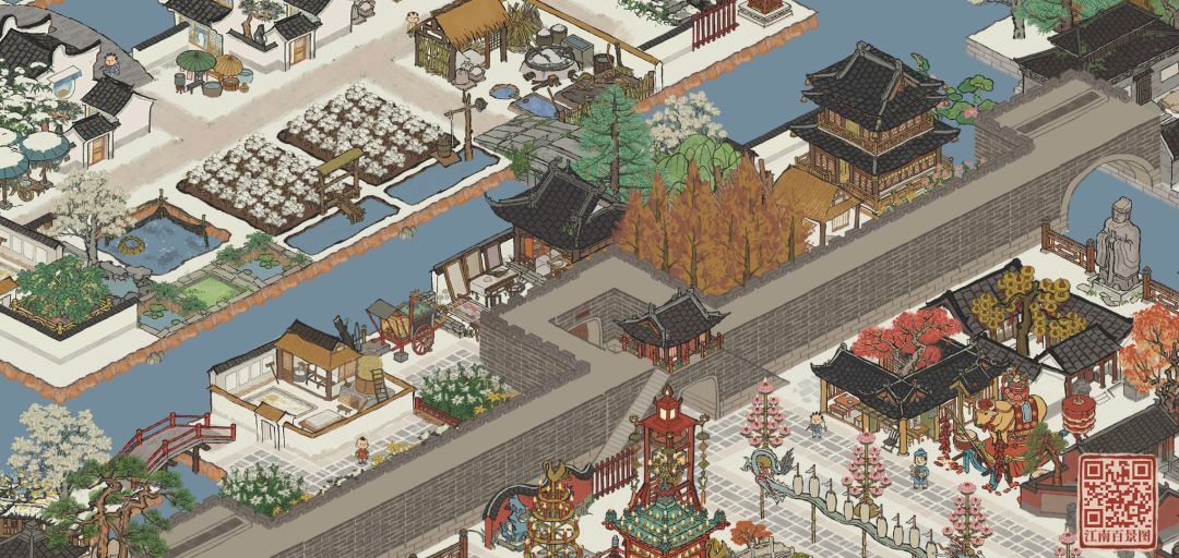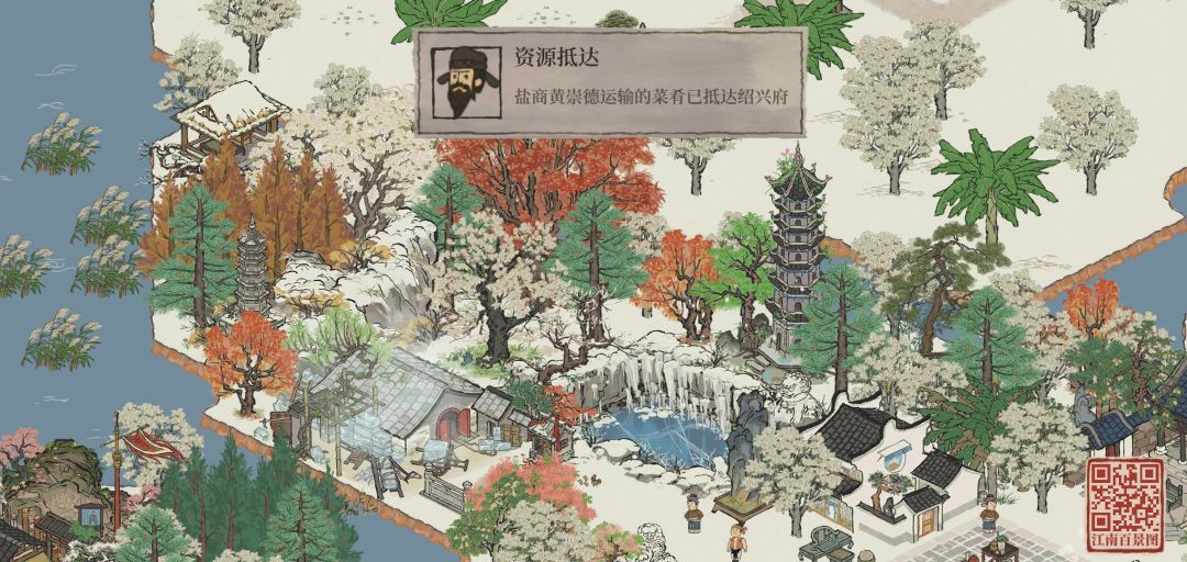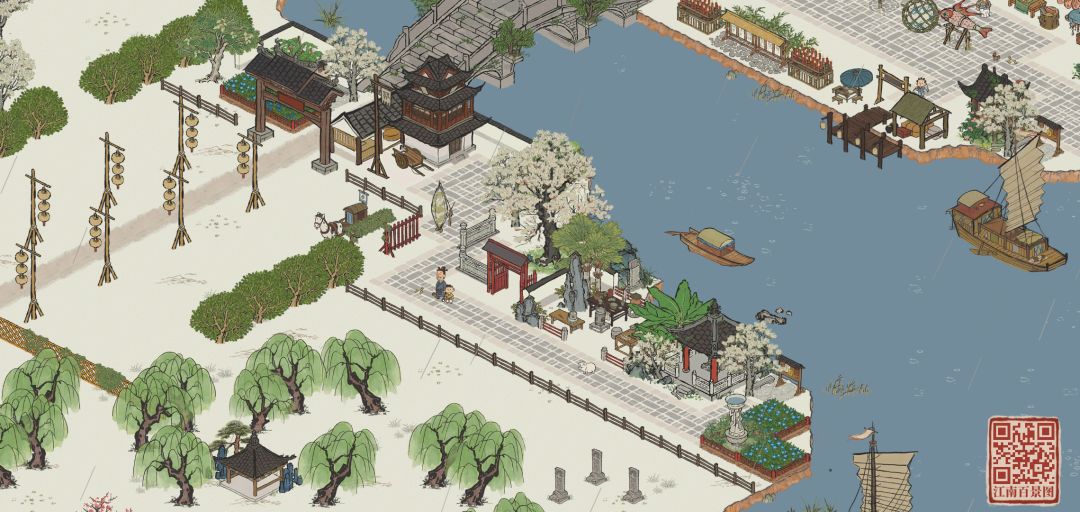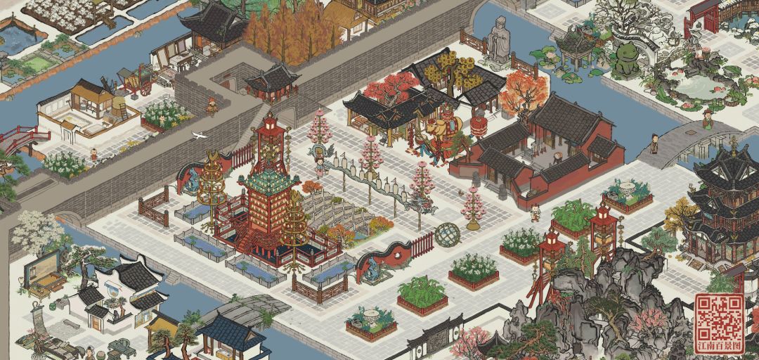 打倭寇的左边地区,雪落腊梅+梅园+树下圆凳+登龙台碑+雪屋夜棋+湖上回廊+白玉兰+竹间雅座+布鞋生产(这里升5级全黑和雪更配)+柳杉+白菊花+告示牌+不老山+2级住宅(这里要么别放住宅,要么就放2级住宅,试了很多遍的结果)+砖刻照壁x2+堂前睡莲+太湖石(可以自由发挥哈)