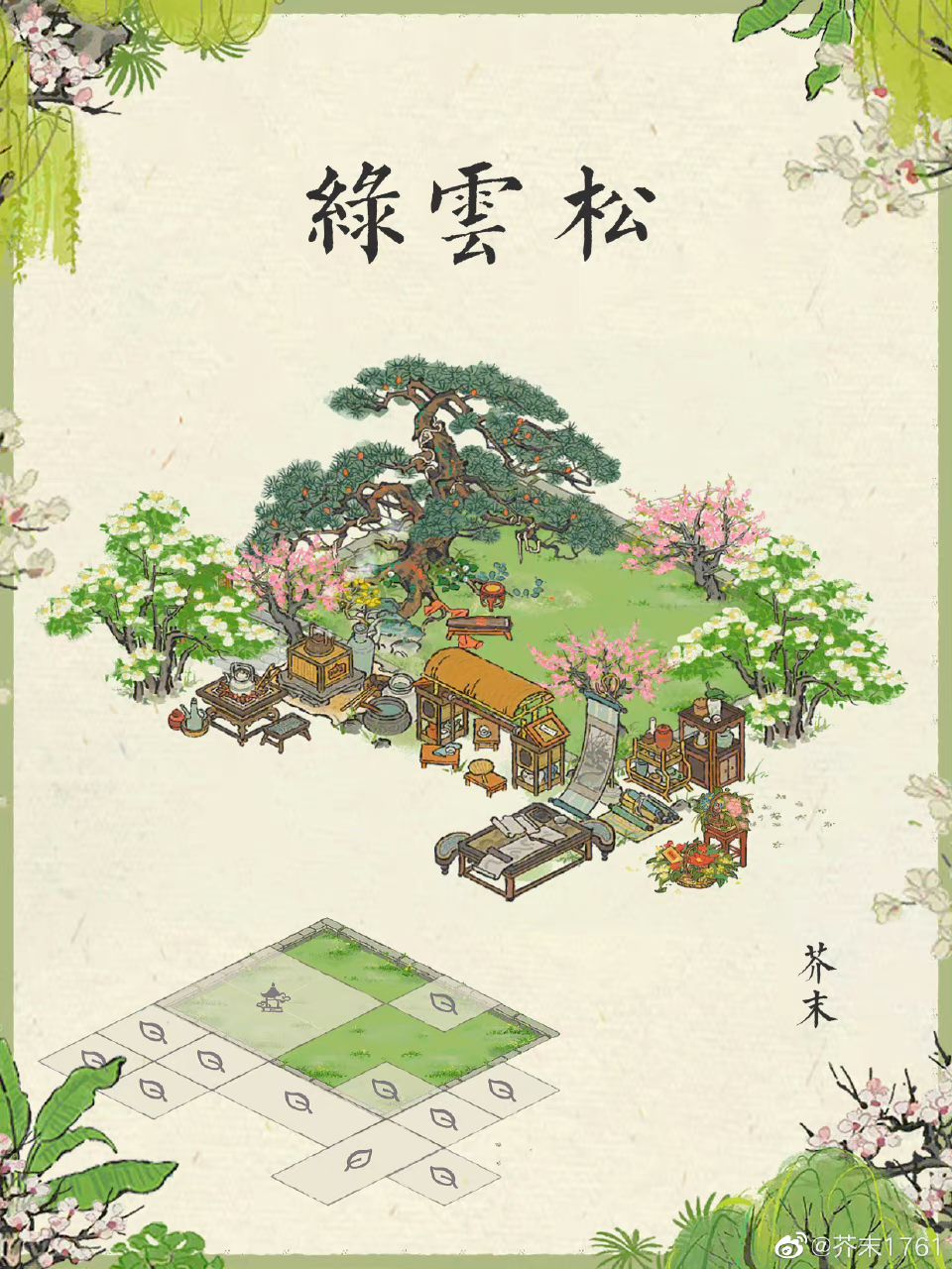 第一块:绿色休憩地(别问,问就是没啥雪景建筑了),而且也没啥需要消耗的建筑了,随便在围脖找到的图,觉得好看就模仿改造了一个,参考图见后方哈