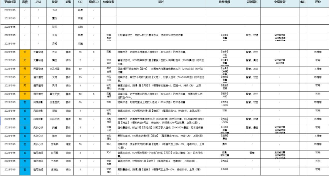 《山门与幻境》功法推荐表,新手必看!