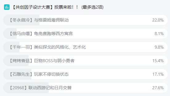 为了让大家可以有机会参与到游戏的制作中来,上上上周我们举办了因子设计大赛!