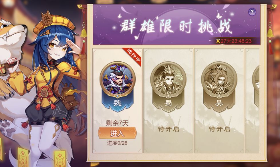 活动内容:活动期间开启限时副本挑战,活动副本共有7层,每层4关,每次过关可获得奖励。每日解锁一层可进行挑战。