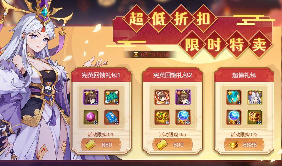 活动内容:活动期间,超值礼包限量折扣出售