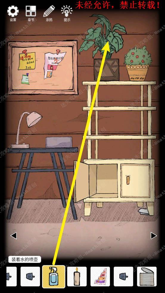 11、到台灯场景,使用【装着水的喷壶】给植物喷水,拿走【青虫】。11