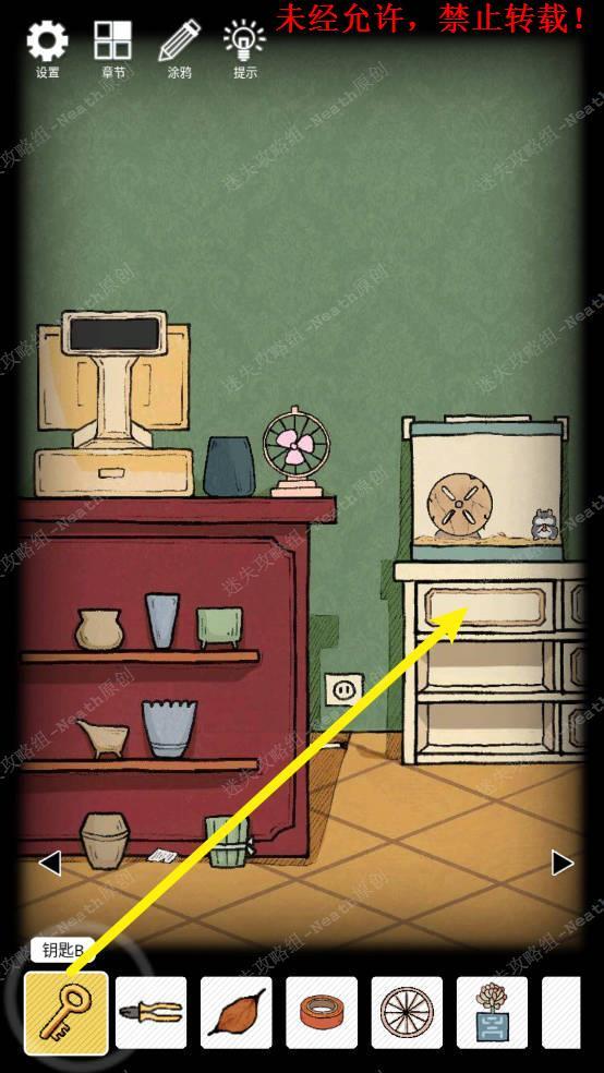 32、使用【钥匙B】打开仓鼠下第一层抽屉拿走【营养液】。32