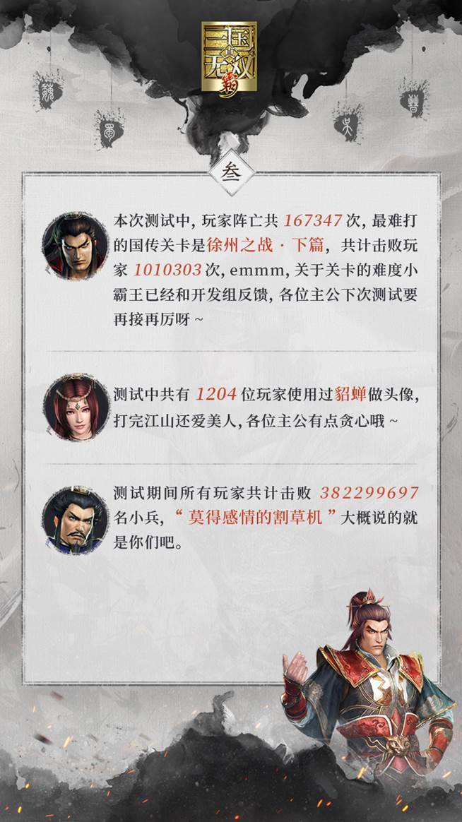 测试期间诸位主公携手在《真三国无双 霸》创下的数据里程碑
