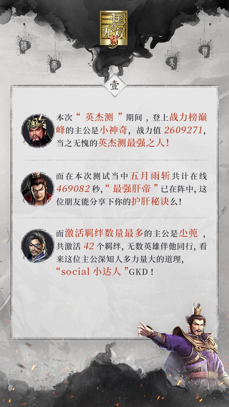 感谢各位主公的大力支持,“英杰测”现已圆满结束!