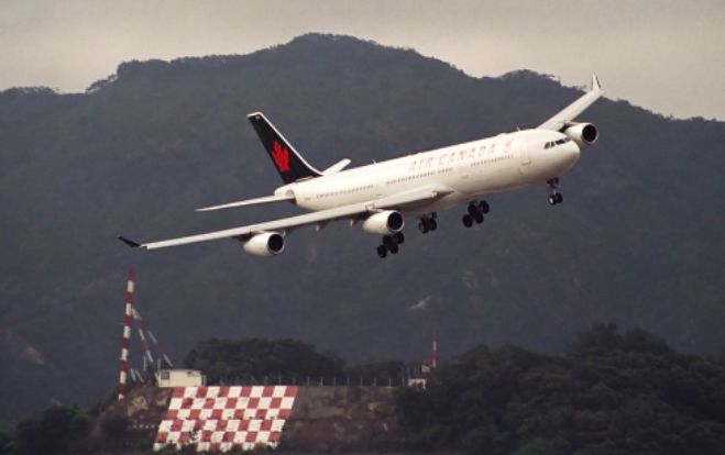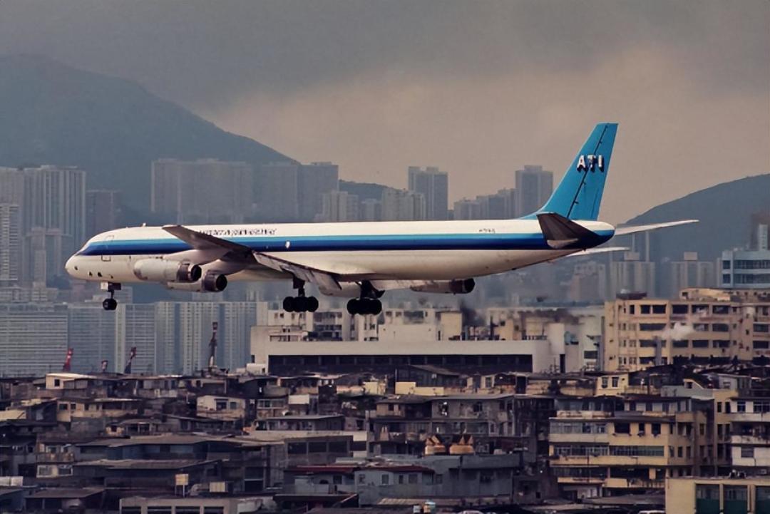 飞机在九龙城上空完成了著名的45度转弯后,飞向地面跑道