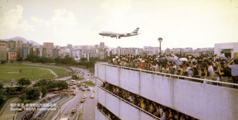 1998年7月6日,启德机场最后一天运营时的机场停车坪挤满了人群