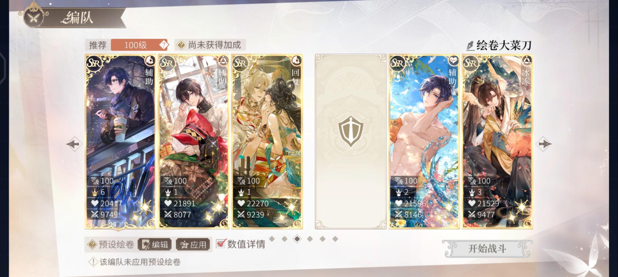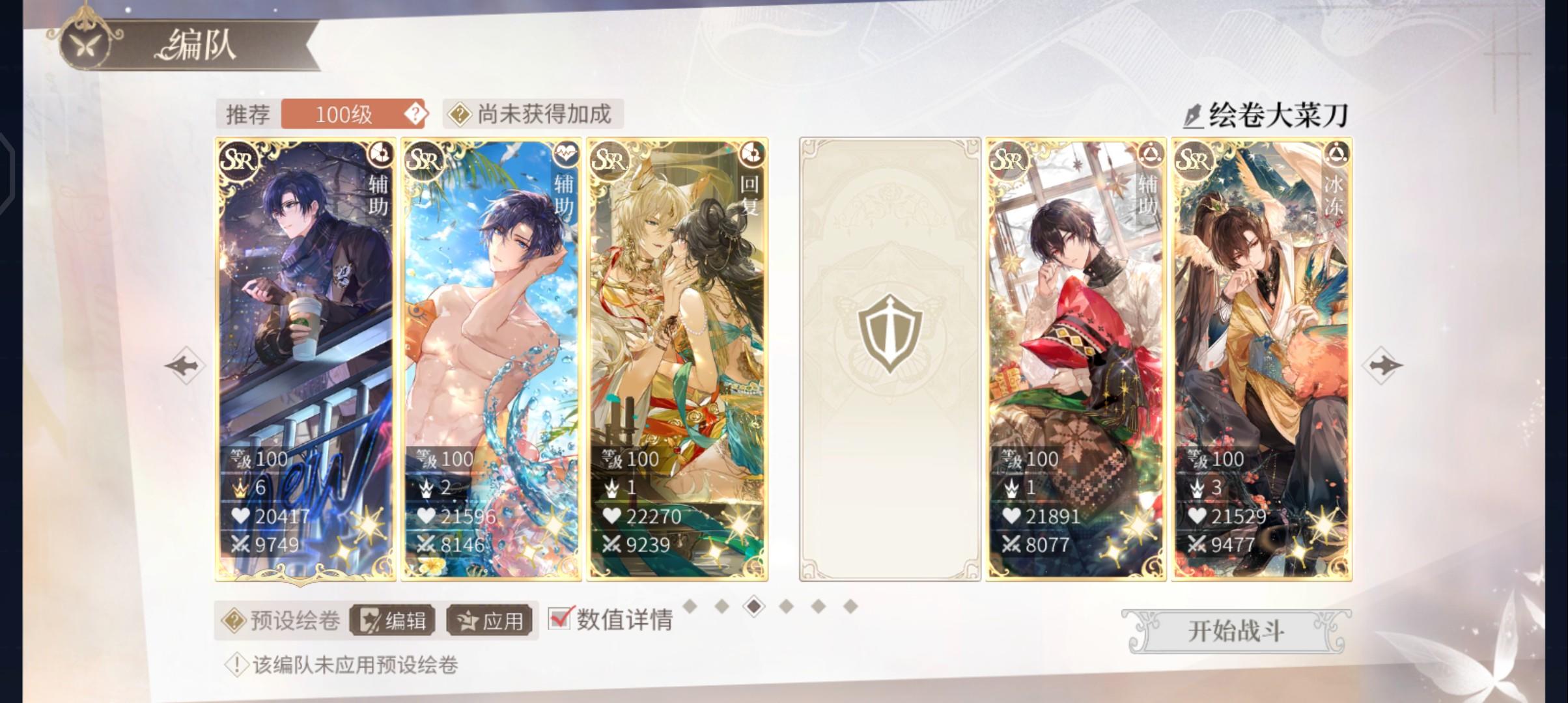 反正对面只有一回合,抗住就好。敌方特技增长快,且伤害高,一队必有一张奶卡。于此剧终+匣中+青丘即可。在血量OK的情况下可以适当集火右面的蝴蝶,小心中间蝴蝶的高攻击,如果没有驱散不建议集火左面的蝴蝶。而且即使有技能冷却也需至少四回合,如果集火左面两三回合就会吃到一个持续伤害。