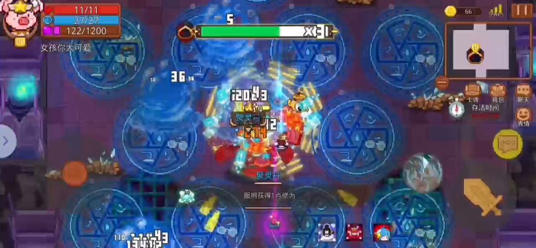 3.进图一直点技能贴脸BOSS,吃丹药渡劫修仙就行。玲琦天赋召唤爆破兵提供免伤无脑渡劫,渡劫开始就放技能摇人,注意渡劫时保证护盾最低也要有10点,因为雷劫伤害最低也有一点。