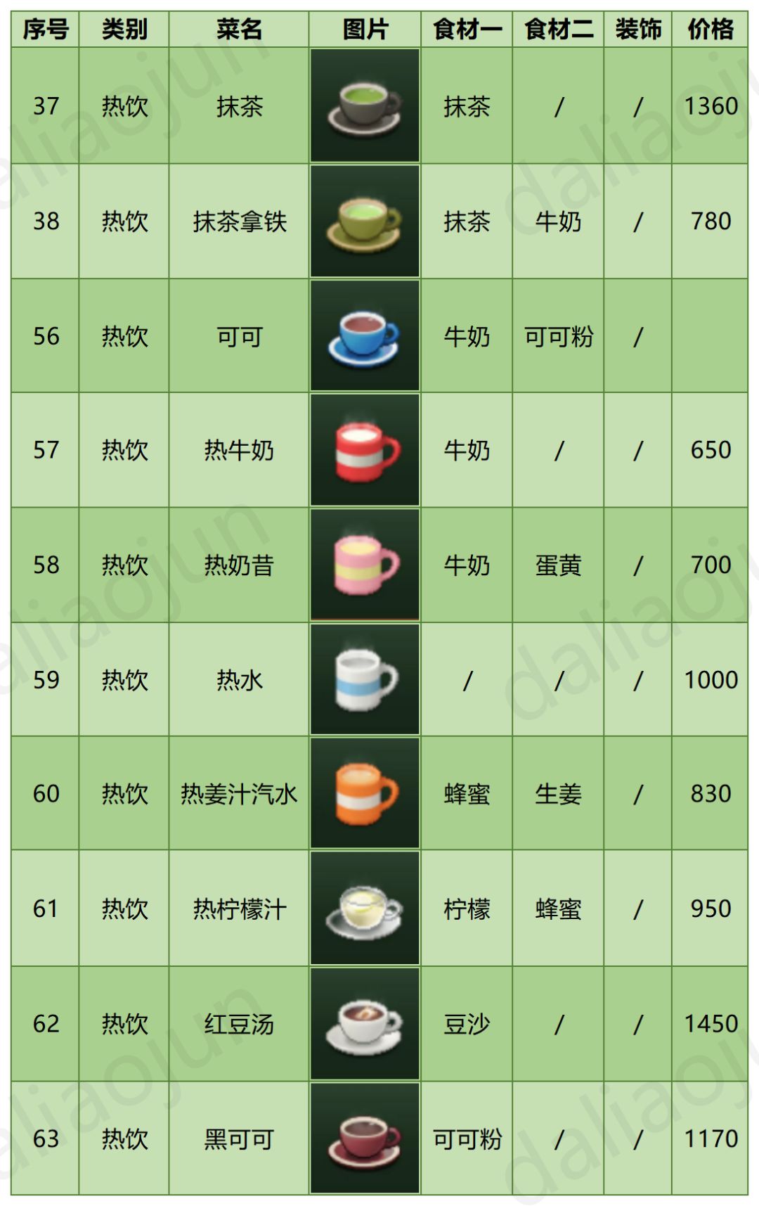 63个咖啡馆菜单,序号有点混乱,另外翻译可能有误,加了配图,食材和装饰物配图对应在后面,最后一张是总表
