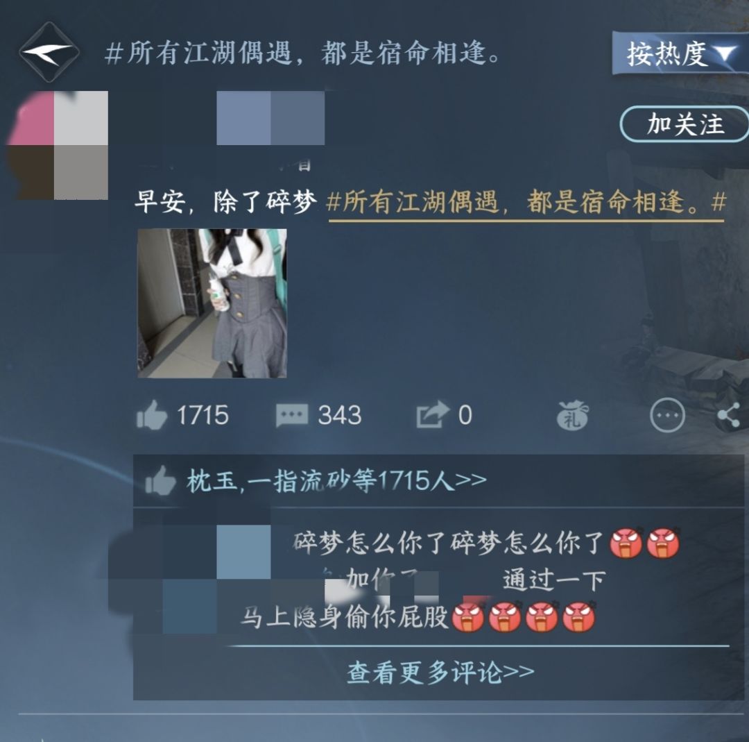 除了帮会,团本,情缘这种看起来本来就应该有的社交系统之外,逆水寒手游还直接增加了类似朋友圈能发照片的话题系统。(点赞甚至会被看见……)