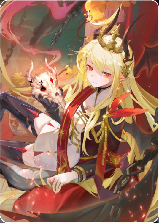 真正的恐惧大魔王,上限一回合恐惧死四个瞬间结束战斗(梦里),下限有弱充能加叠甲加武装天赋嘎嘎能抗。攻击还能触发恐惧,可以说是几乎完美的1号位角色。买少量礼包就能打通超弦高层的队伍都是依靠这样机制强大的卡,整个游戏独一无二的群体恐惧技能让这张卡足以封神。(另一张绯红夜魇局限性太强了)
