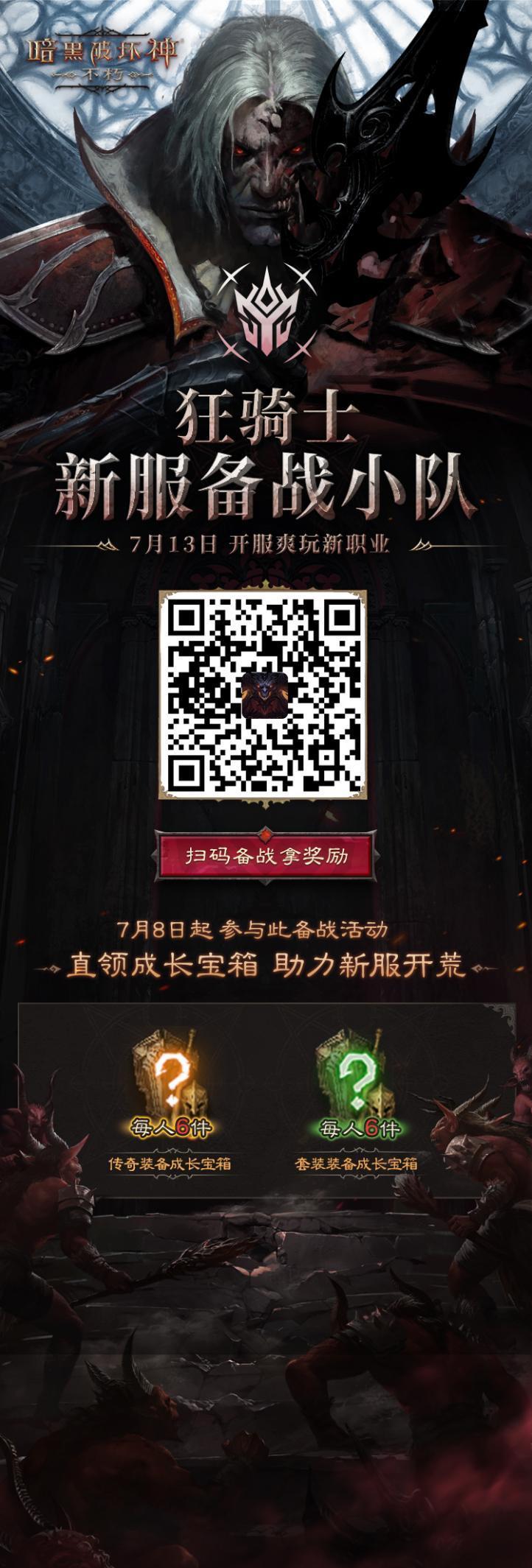 7月8日起参与狂骑士新服备战小队H5活动,简单动动手指完成小队人数目标,即可轻易解锁传奇装备与套装装备的成长宝箱福利!最高可领取6件橙装+6件绿装,助力新服开荒!