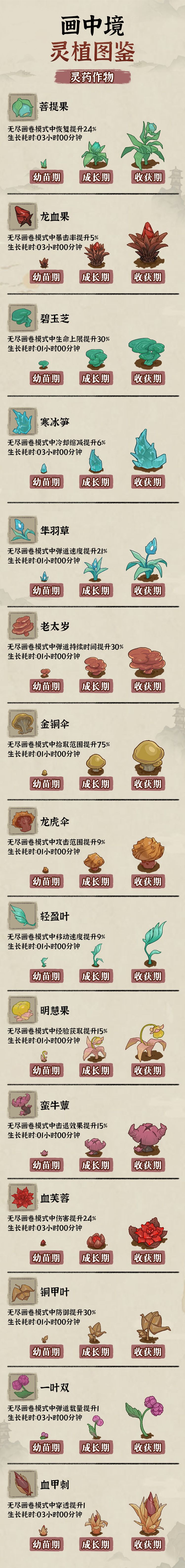 阿乙这就奉上画中境「灵植图鉴」,帮助大家更好地种植和使用灵植,修行更上一层楼!