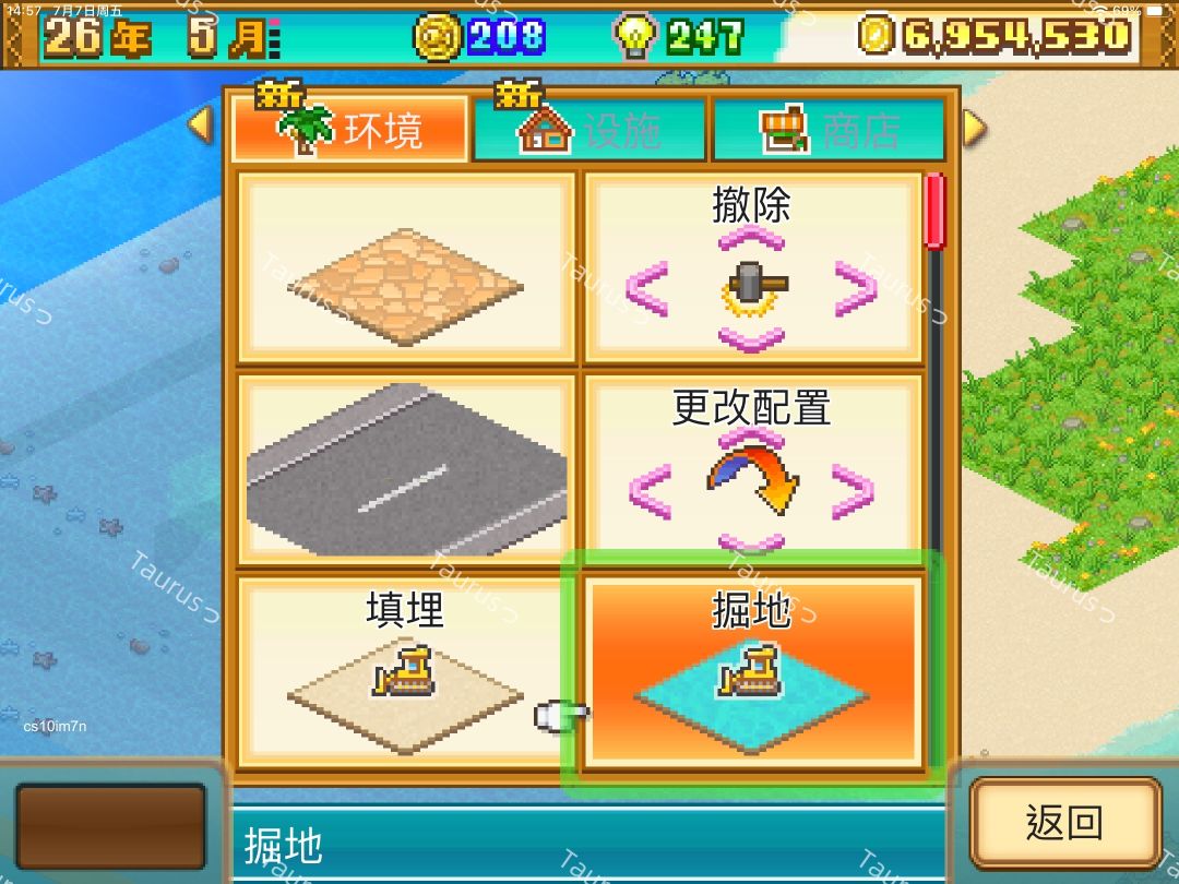 填埋和掘地选项在菜单–设施–建造