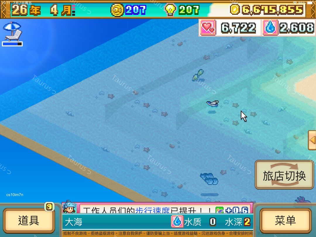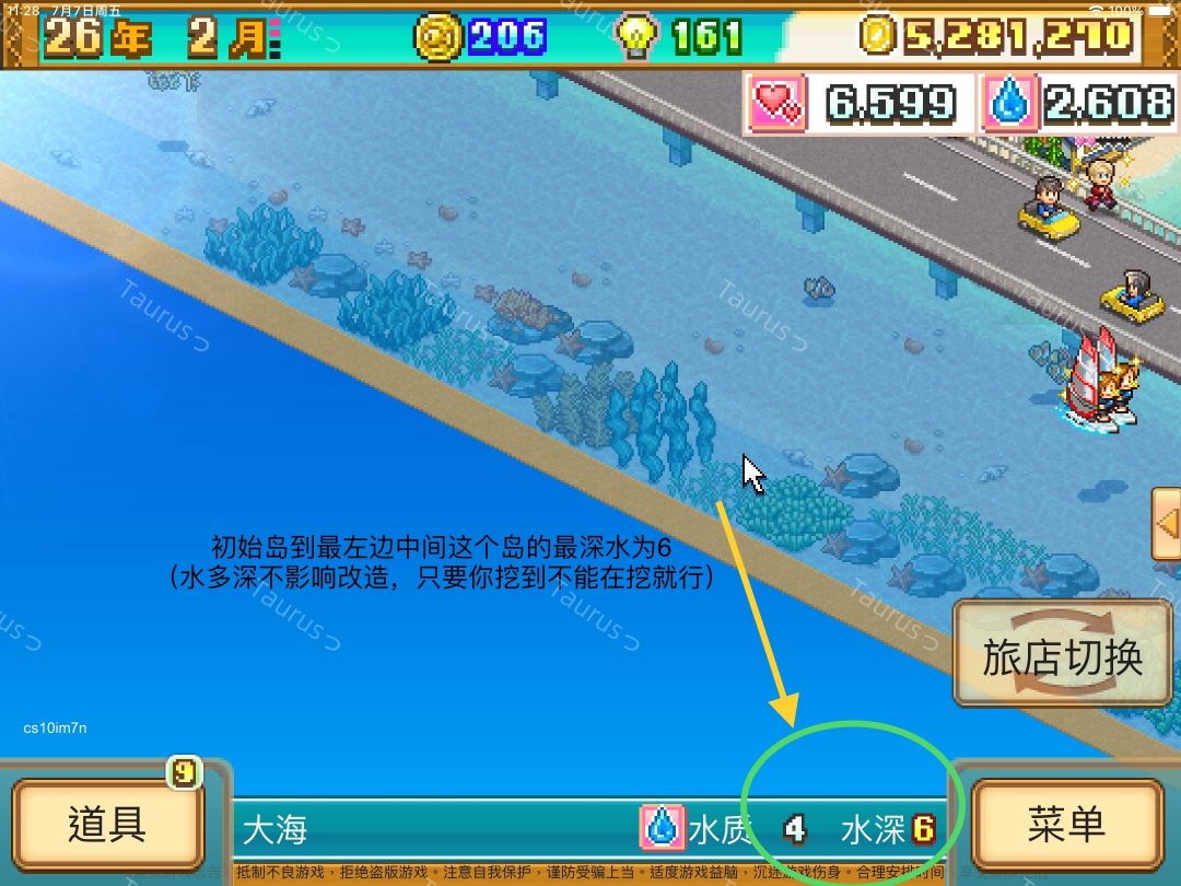最后就是水深2→沙滩(沙子露出水面)