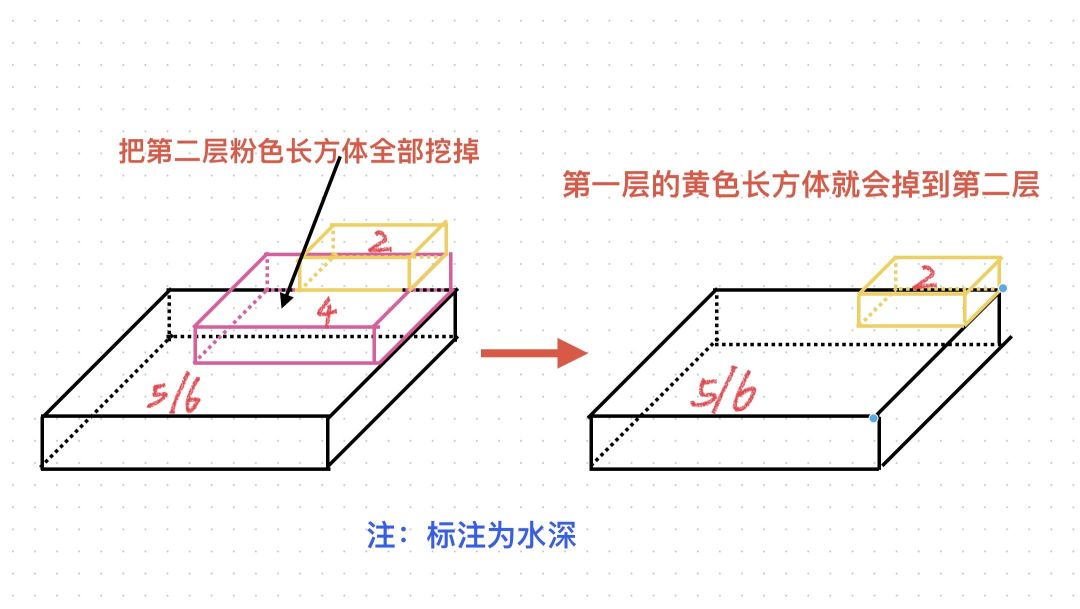 首先演示怎么由水深5→4(第一层→第二层)