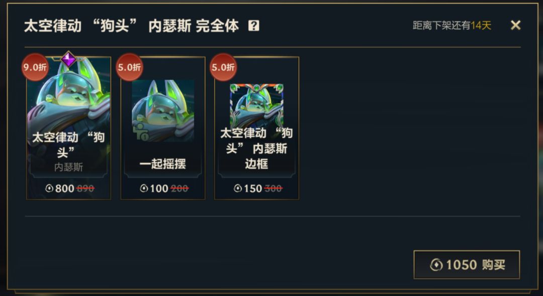 内瑟斯新皮肤的完全体礼包九折优惠促销中!只需1050点券,就能将皮肤、皮肤姿态和皮肤边框一并收入囊中~