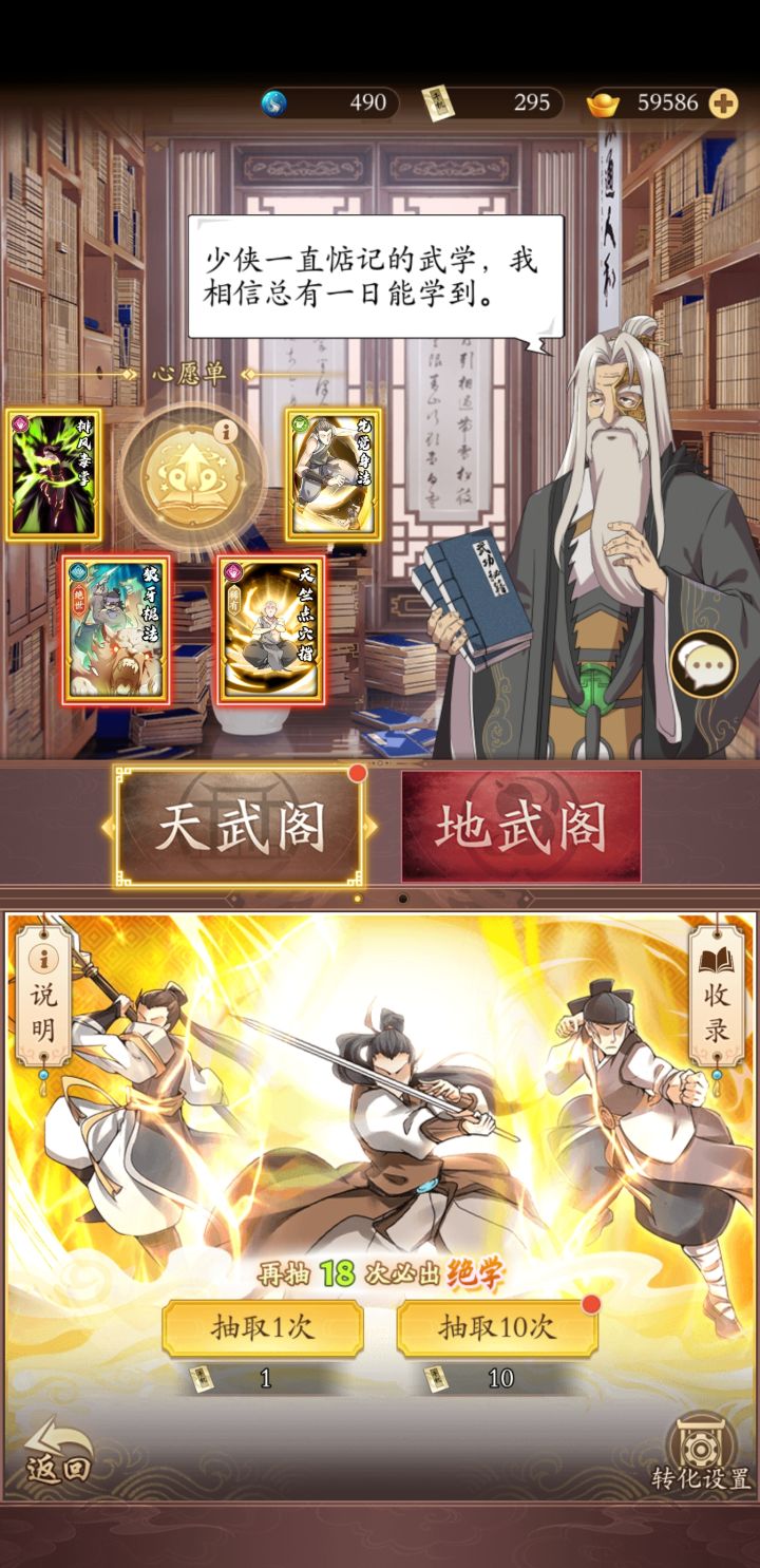 ²门派抽卡 第一个太极门一定不要去抽,这只是第一个门派后面需要太极门派武学完全可以常驻心愿去抽
