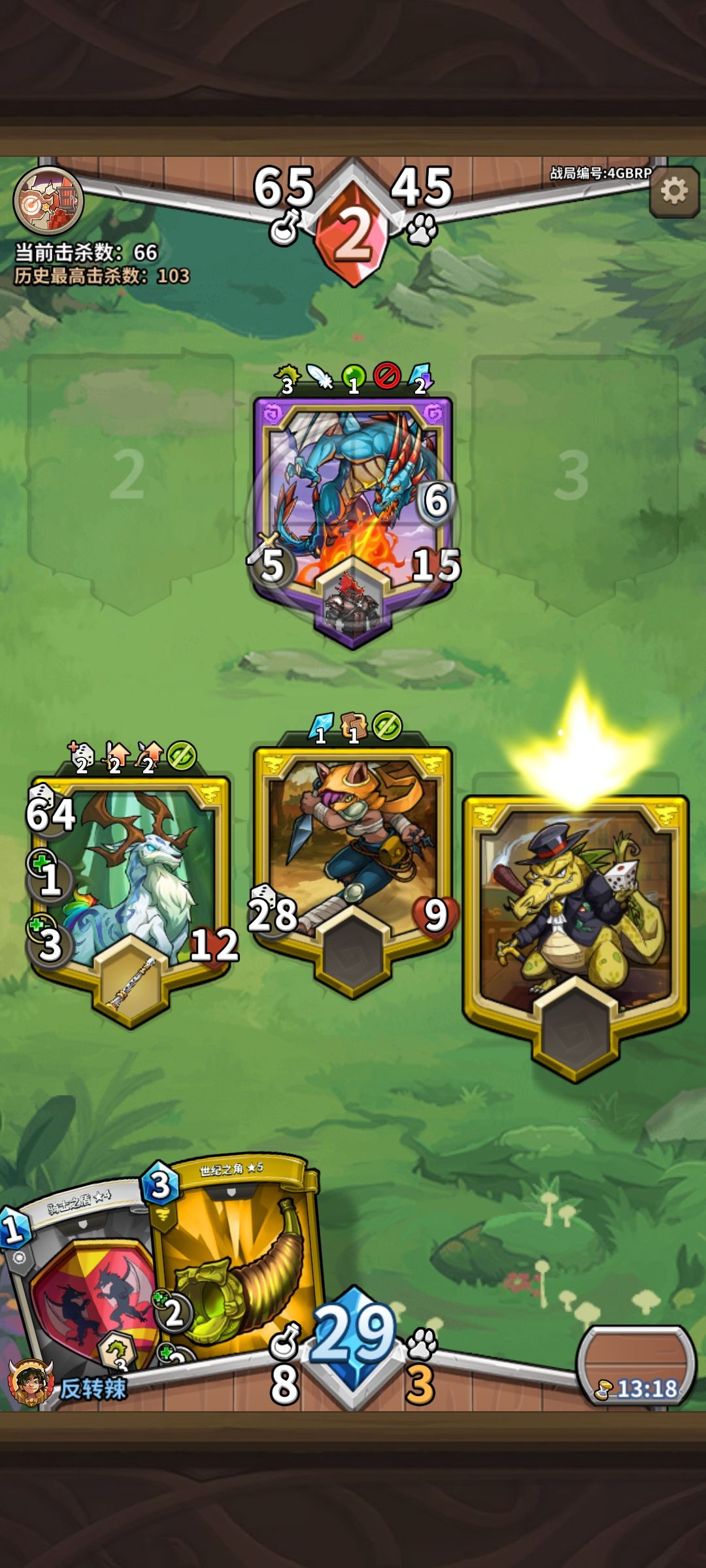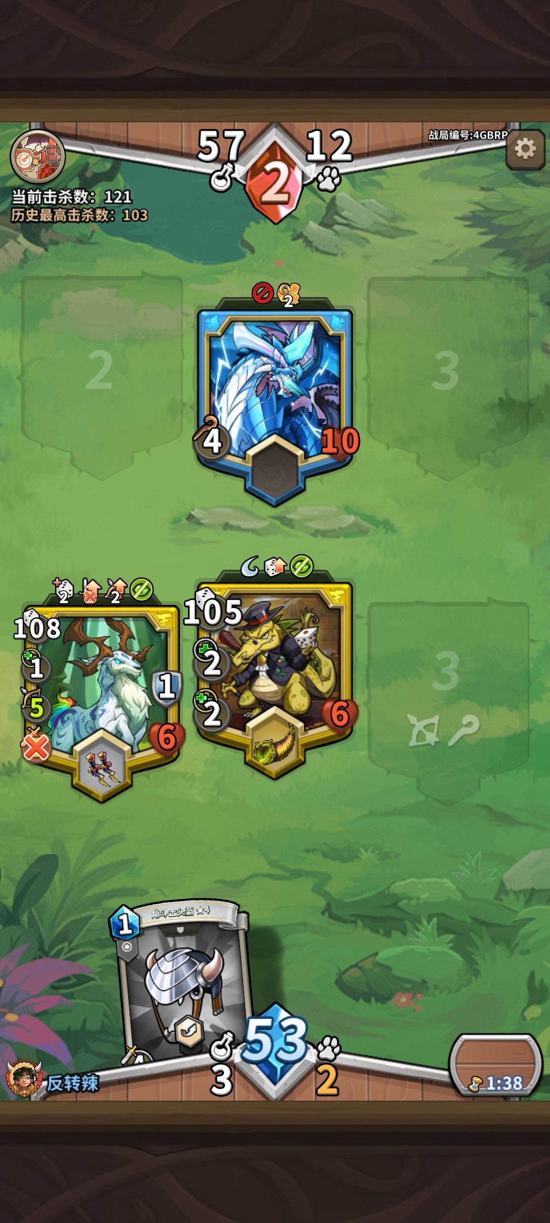 接着把治疗给鹿装上,鳄鱼投机者的治疗别急,可以后面再装(道具卡手,如两个治疗装备顶着了就给鳄鱼装上),如果打龙掉帽子(没有护甲的,就献祭掉或者给1号位装再装护甲)