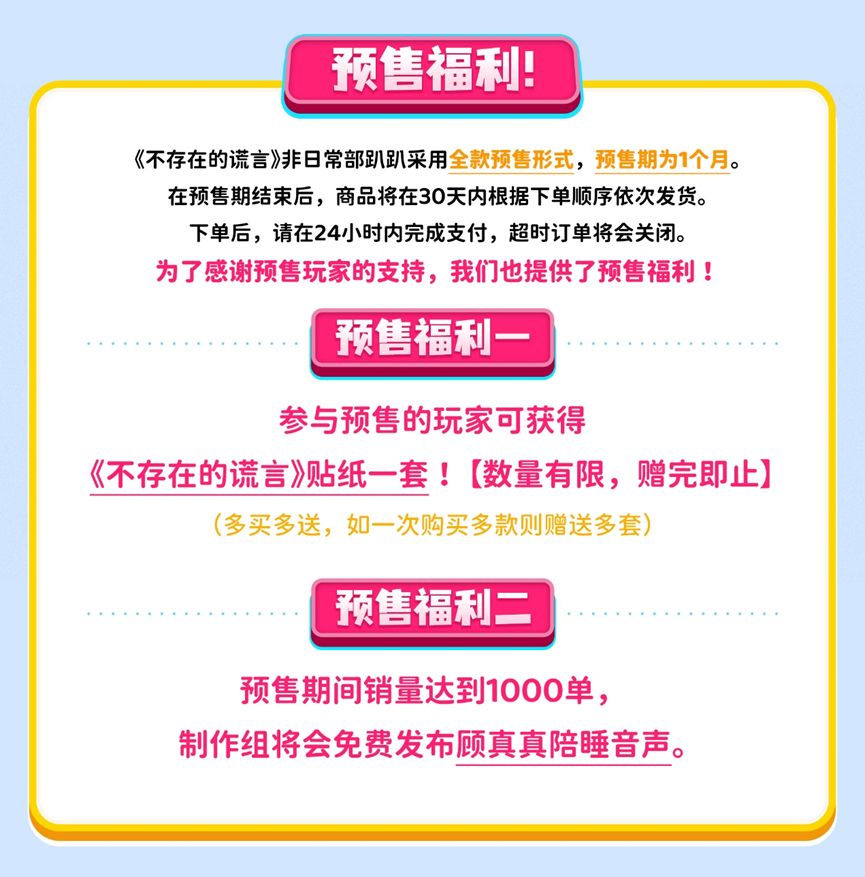 从《不存在的夏天》《不存在的真相》到移动端的《不存在的谎言》,《恋爱绮谭》系列一路以来受到了广大文字AVG爱好者的喜好与支持。在《恋爱绮谭~不存在的真相~》众筹时许诺给大家的趴趴周边,又让大家等待了这么久。为了表达感谢与歉意,本次非日常部趴趴预售期间也准备了福利回馈大家~