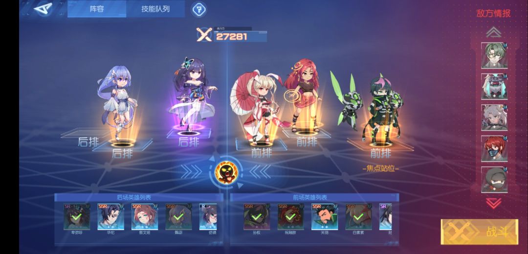 并且,前期的一些蓝紫土都安排上,不要舍不得用,建议前排先站住了,才能更好的打输出,并且我们后面有两复活呢~副T就带祝融,还是比较好获得的,七天什么的没有的话可以选她,很好用,没有就带陆逊,有一技能就行,祝融好一点因为她是女的,卑弥呼能给她加buff。为了防止张郃疯狂切我后排,所以我带了一个白素素,素素带的觉醒技能,能群奶+清减益,15scd还是不错的,奶量挺足,也可以和卑弥呼有个buff收益,没有可以用夏侯惇代替。后排就带卑弥呼,没有其他c的我只能用她了,单体伤害很高,获得率挺高,我紫卡抽的都是她,所以都能升六星了。但是不带一技能,带觉醒,是为了防止甄宓死太早。再带一个夜的盟友,队友死亡给其他女性加buff,很好用的~