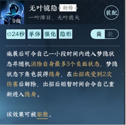 江湖百家技能,可以清除负面状态,同时可以隐身!