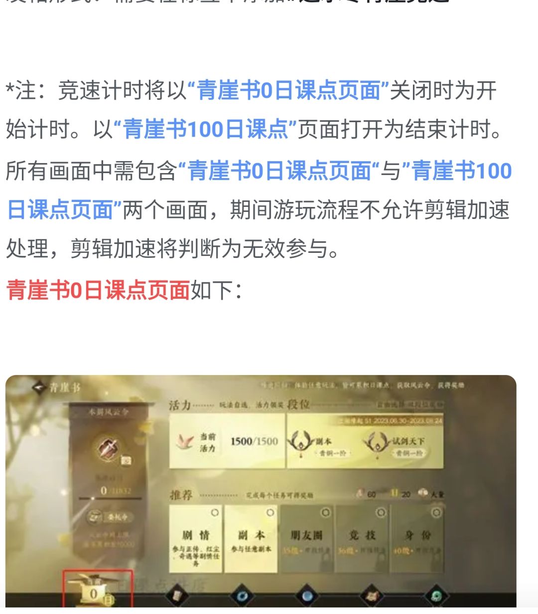 猜想2:还有一个活动bug:注意事项中只按照0课点显示开始和100课点显示结束,而游戏中做了日常是可以先不领的,这方面官方不知道在制定规则的时候是否有漏洞。(可能这样子逃课投稿会被删帖,毕竟和活动原来的本意我认为是相违背的,但规则原话看起来没有考虑到这点。逃课向)只说明了不能加速