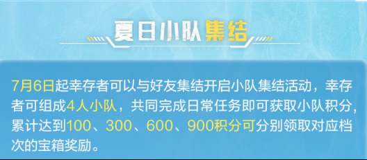这次暑假的活动真是没啥难度 签到活动每天记得点一次就行 沙滩挖宝就难一点了 每天要点6次 笑哭o(╥﹏╥)o 个人任务都还好说 这个组队的任务可真需要靠谱的队友一起完成日常才行 不过想想难度也不大 7月6号就开始活动了 我已经拉好队友了 肝帝们也赶紧找人组队