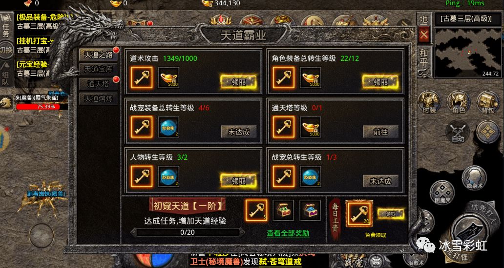 游戏中也是直接给神器的,提升我们的战力也是在一瞬间的!还有就是战宠的!道士是需要依靠战宠来打伤害的,战宠的属性加成非常重要!狂暴战宠:小资的玩家可以拿下第一个所有的战宠,它是有攻速加成20%的,后面对你打怪都是有很大帮助!