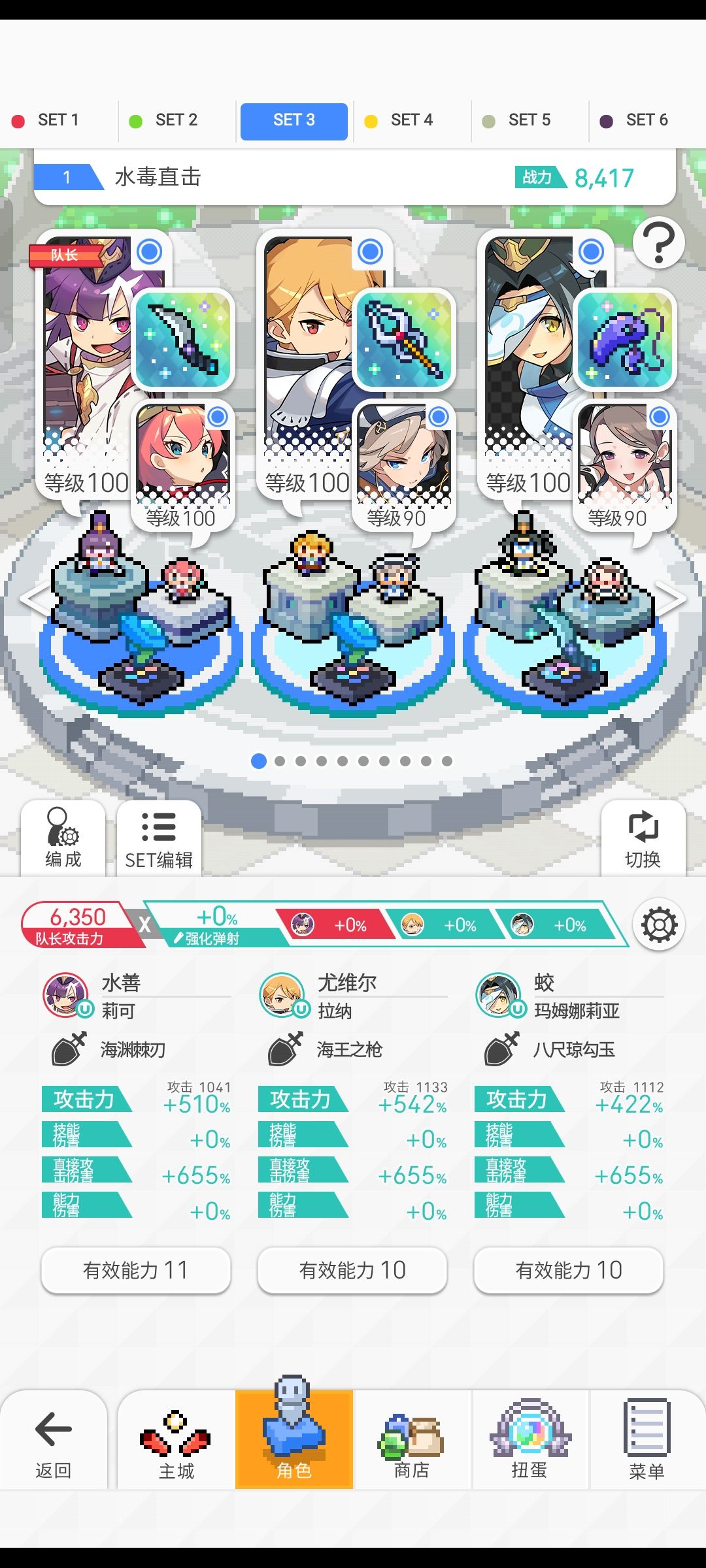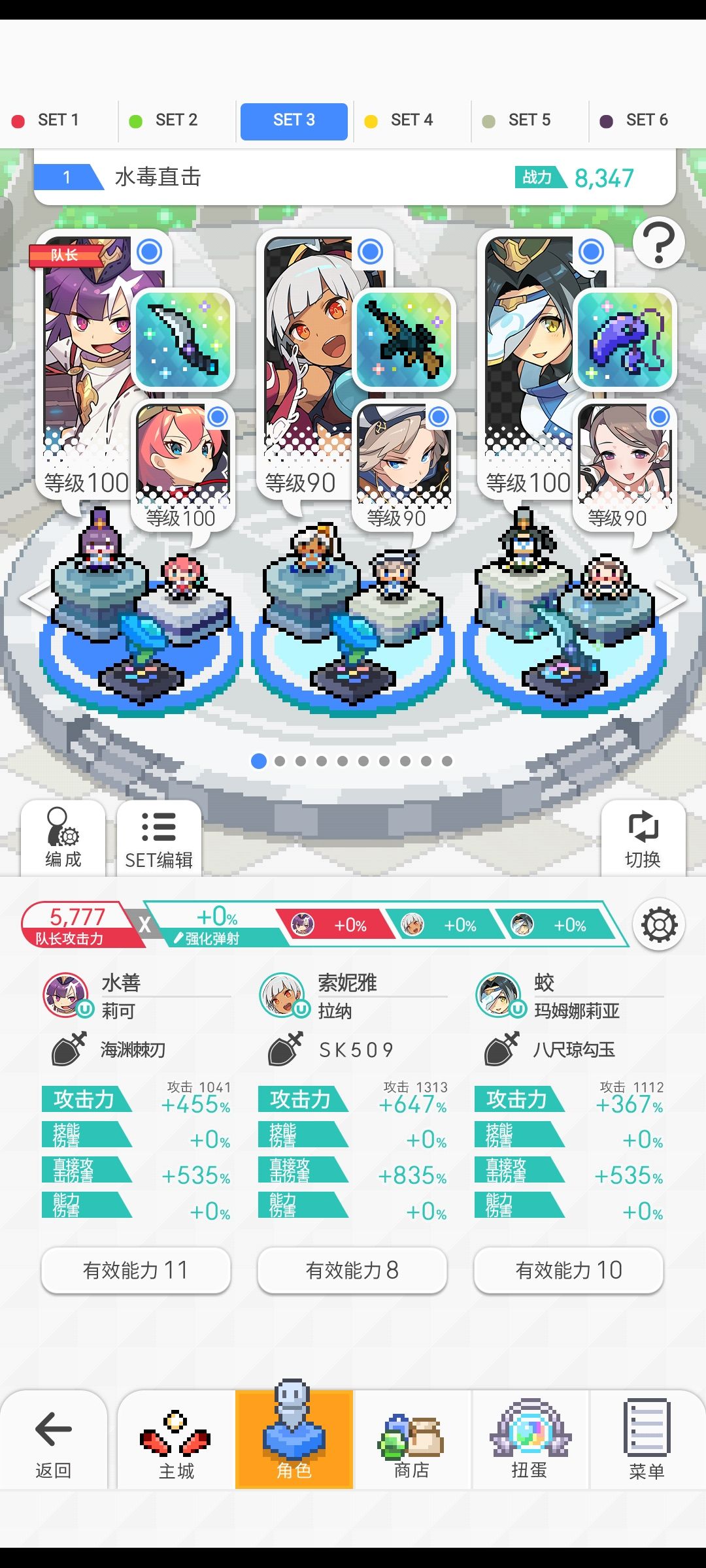 整体来说挺稳的,就是用的时间有点久,九分钟,阴阳人和水大奶是必备的,舞娘可以换成飞燕,超鲨枪可以换成羁绊枪,没有羁绊枪就换成分海棒,勾玉和小刀不推荐换,如果把舞娘换掉的话,与ss就无缘了,不过如果在提升提升配置的话,说不定还有机会,这套本来是拿来打地狱火的,没想到能过Abs,二版的话用飞燕可以点一下飞燕的充能,剩下的点不点都行,可以说对二版没什么要求