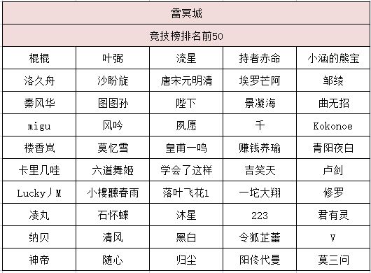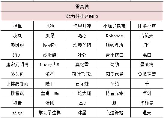 定榜时间截止为7月8日0:00,下面公布榜单玩家: